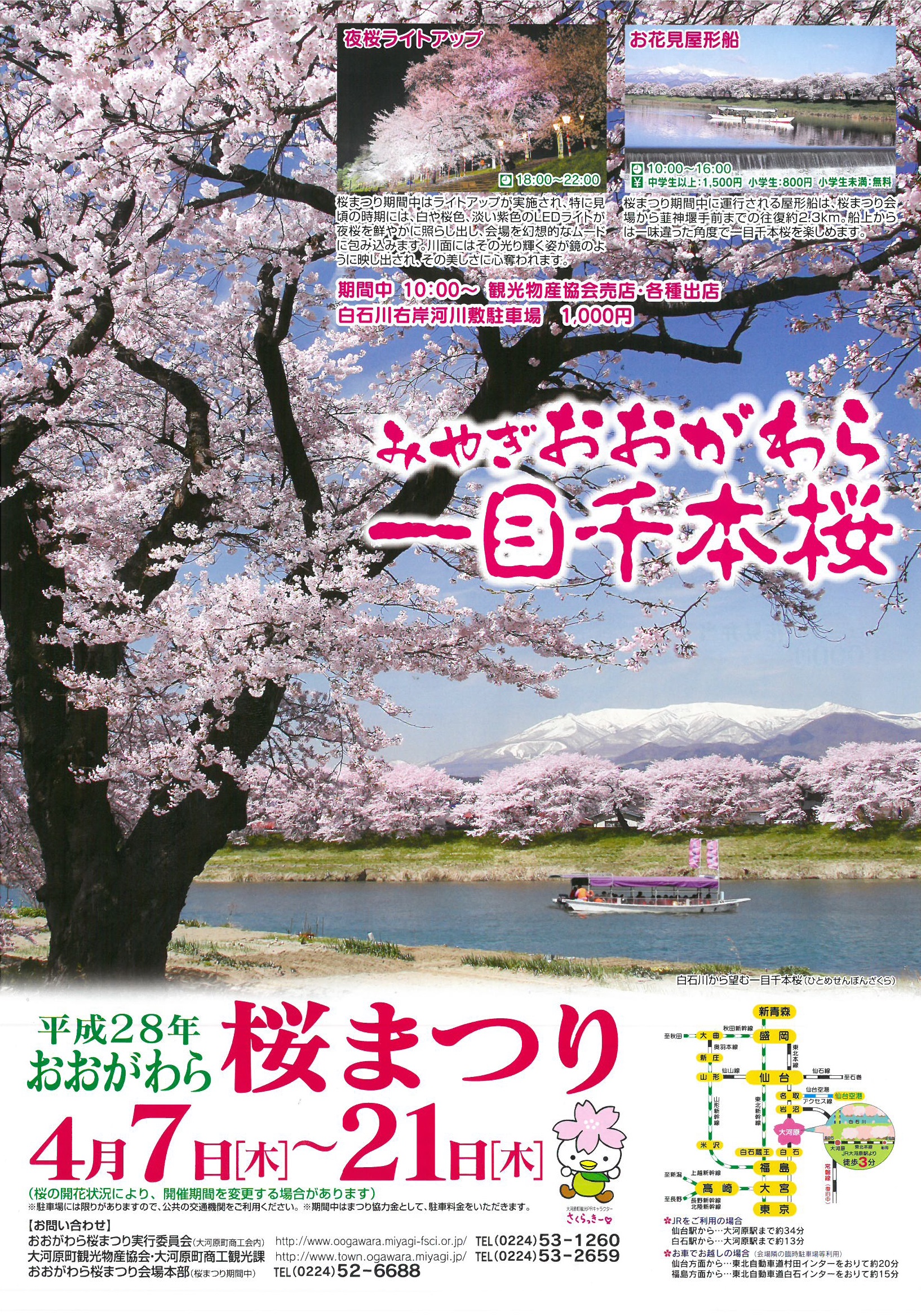 おおがわら桜まつり実行委員会(大河原町商工会内) URL:http://www.oogawara.miyagi-fsci.or.jp/